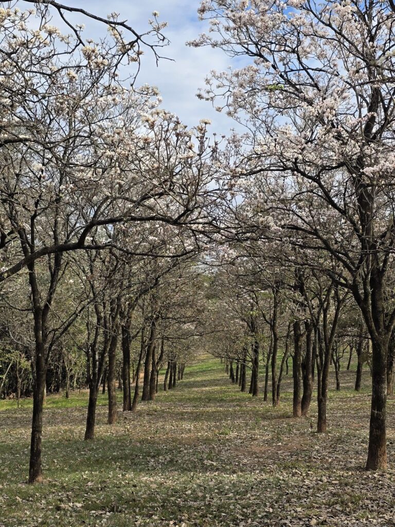 A cidade é conhecida por abrigar uma grande concentração da espécie. No Bosque Municipal Rangel Pietraroia, o espetáculo é ainda mais impressionante: cerca de 500 pés de ipês-brancos florescem juntos e prometem seu auge neste sábado (9) e domingo (10).