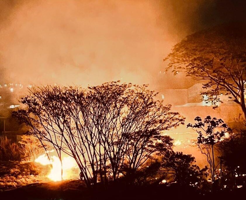 Durante a noite, moradores viram assustados o avanço do fogo a partir do bairro Figueirinha (norte). O vento fez as chamas se alastrarem rapidamente pelo vale, motivo de preocupação para moradores da zona leste e sitiantes do distrito de Dirceu, que já enfrentaram estiagem neste ano.
