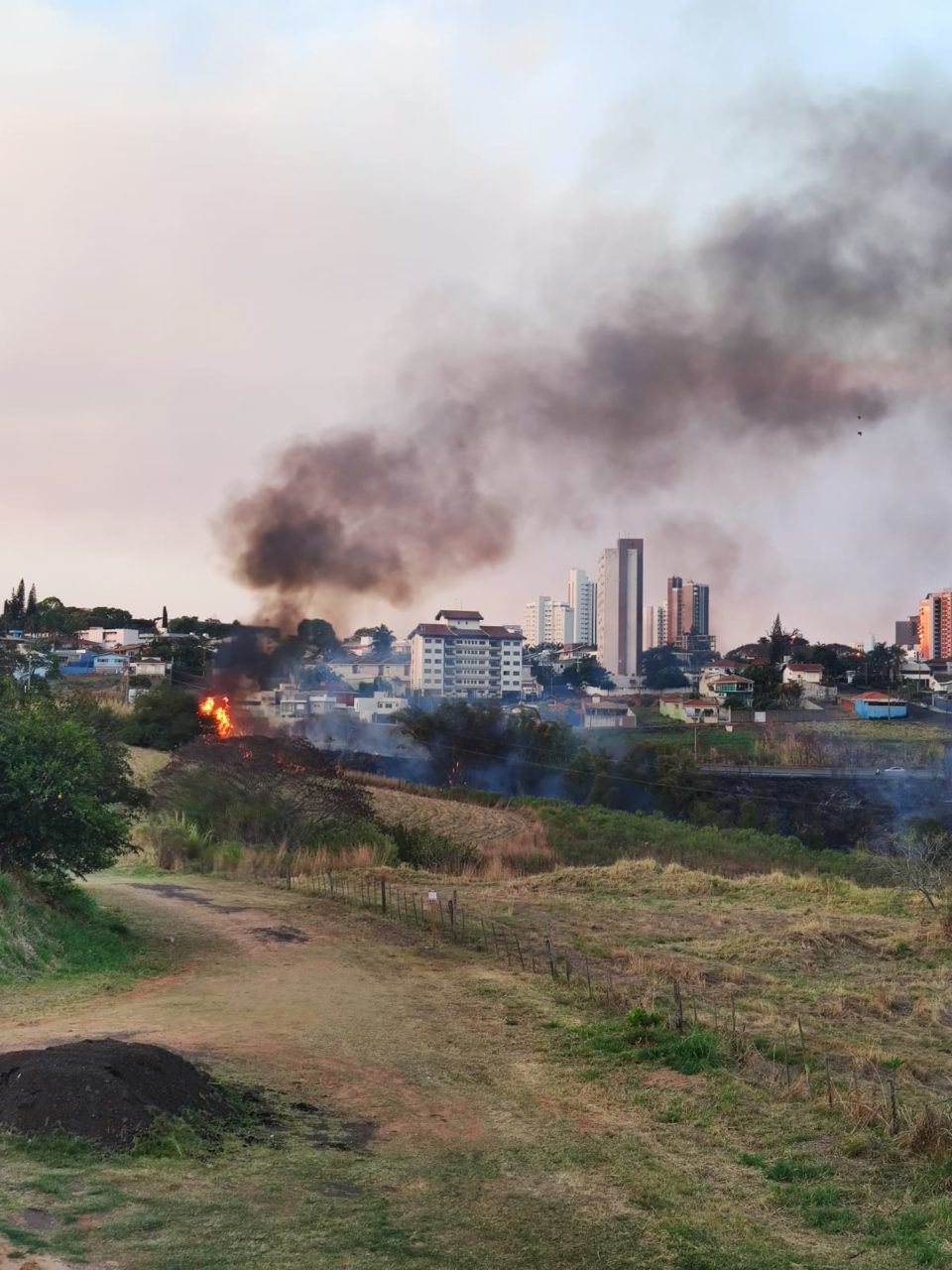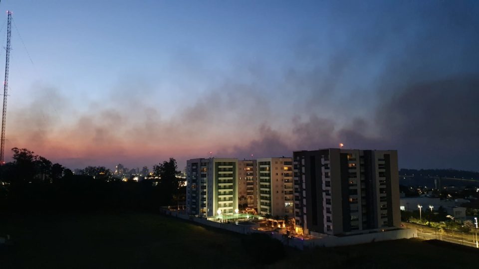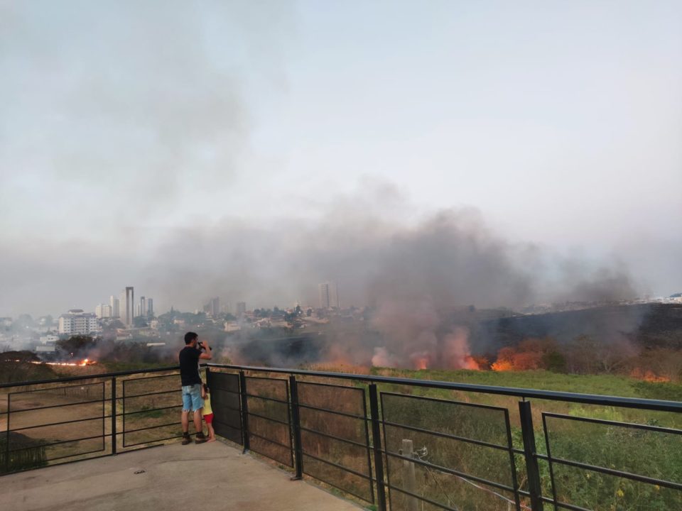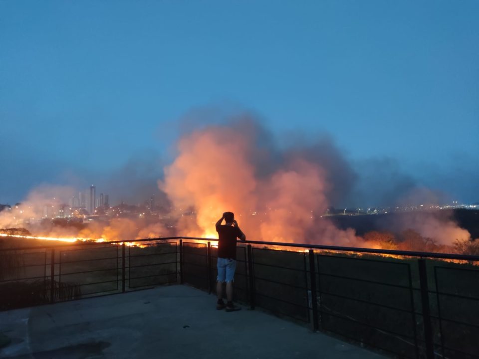 O Corpo de Bombeiros foi acionado para combater as chamas. Não há informações sobre como o fogo teria começado, nem o tamanho da área atingida.