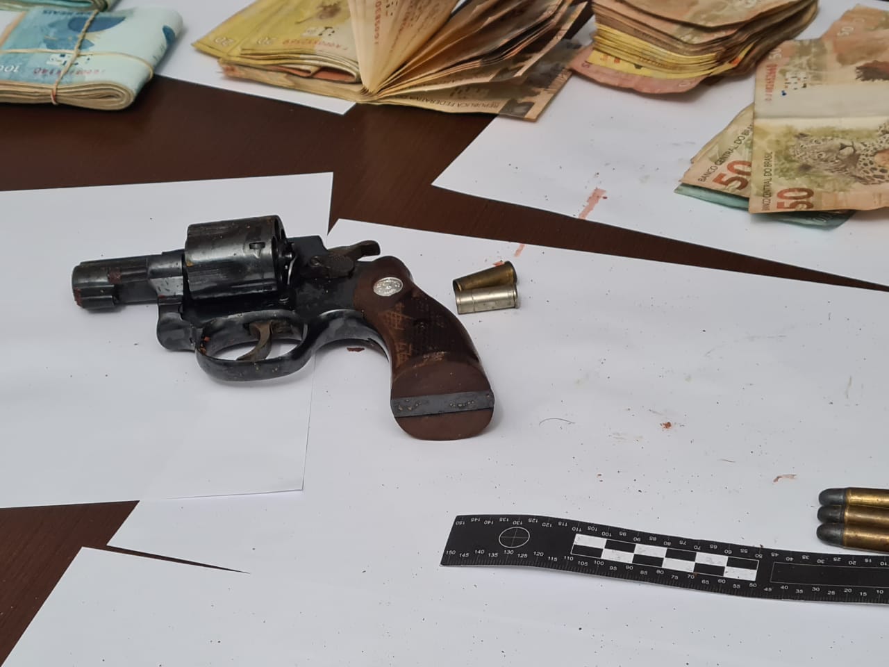 Com Cícero, a PM encontrou um revólver com dois projéteis disparados e um picotado mais R$ 11,3 mil em dinheiro, que foi encaminhado para a Central de Polícia Judiciária.