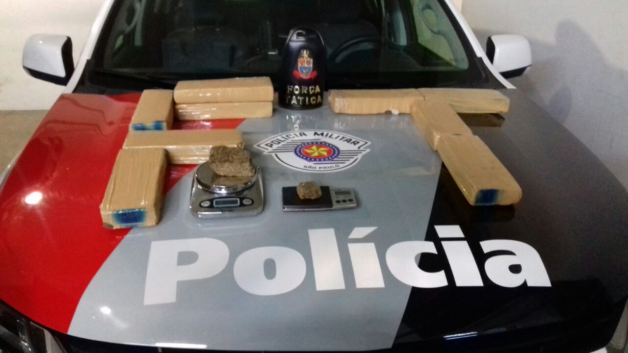 A Polícia Militar apreendeu nove tabletes e duas porções de maconha, além de duas balanças de precisão em casa na rua Geraldo Espadoto, Jardim Maracá, zona Norte de Marília.