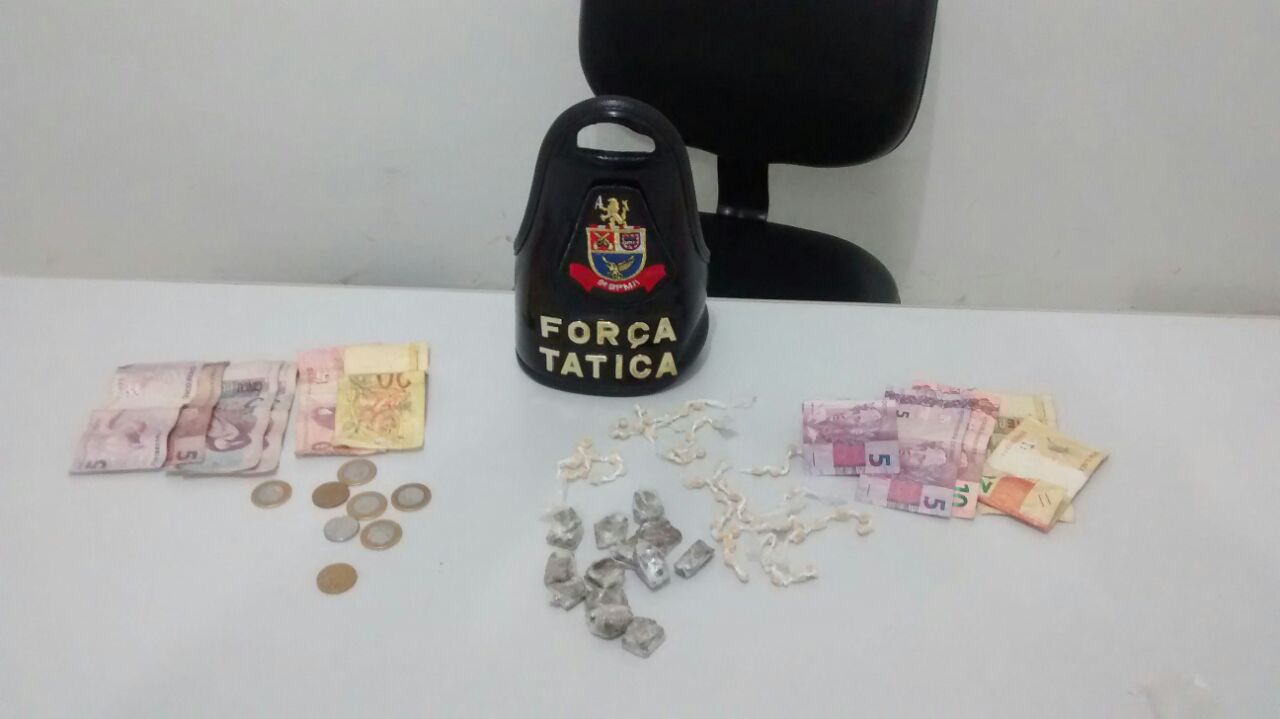 Os policiais cercaram a área e conseguiram abordar os dois garotos. Foram apreendidos 63 pinos com crack e 13 porções de maconha, além de pequena quantidade em dinheiro.