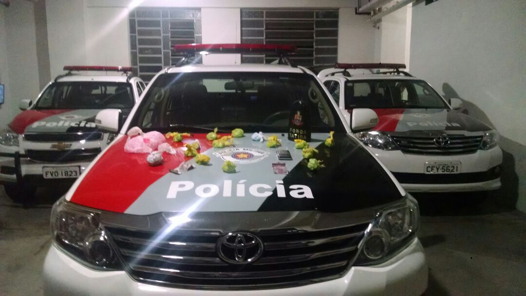 Foram apreendidos aproximadamente 400 pinos com cocaína, 30 com crack, outras 30 porções de maconha, 1000 pinos vazios e uma balança digital.