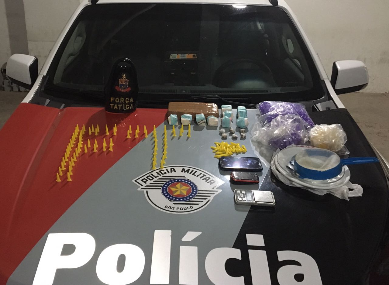 Dentro da mochila que ele estava carregando foram localizados aproximadamente 1,7 quilos de cocaína, em torno de 1500 microtubos vazios, dois pratos, uma colher, uma peneira, uma balança de precisão e R$ 150 em dinheiro.