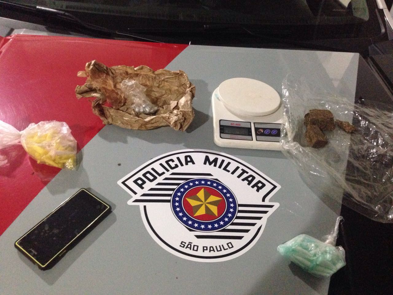 “Foi realizado cerco na região pelas viaturas e o indivíduo tentou correr para o interior de sua residência, mas logo foi detido pelos policiais. Em sua mochila foi encontrado aproximadamente 100 pinos com cocaína, meio tablete de maconha, 10 porções de haxixe e uma balança”, explicou o subtenente Lisboa, da Polícia Militar.