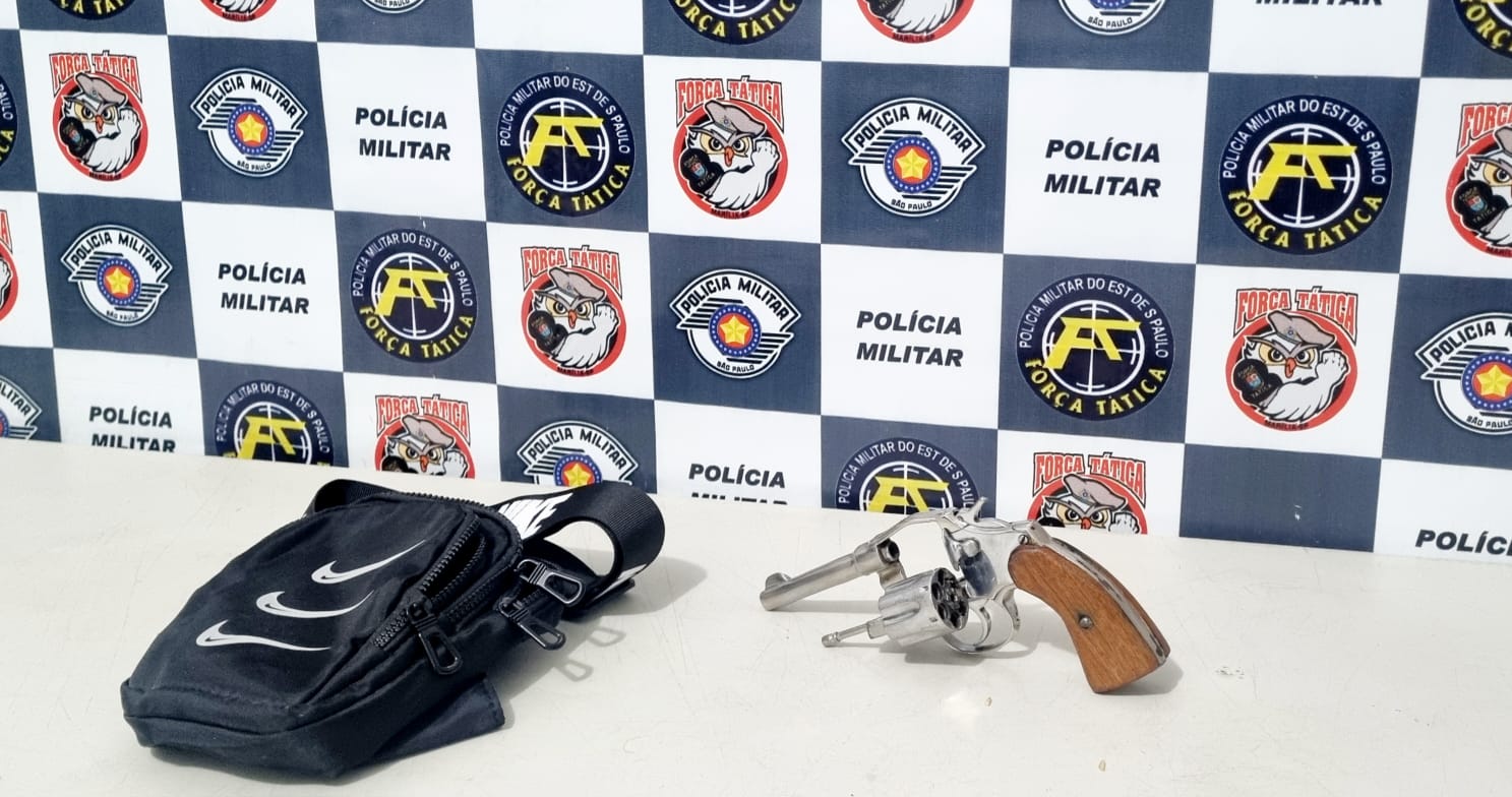 A equipe notou o acusado em atitude suspeita e fez a abordagem. Logo na revista pessoal, foi encontrado um revólver calibre 32 que estava dentro da pochete que o acusado carregava.