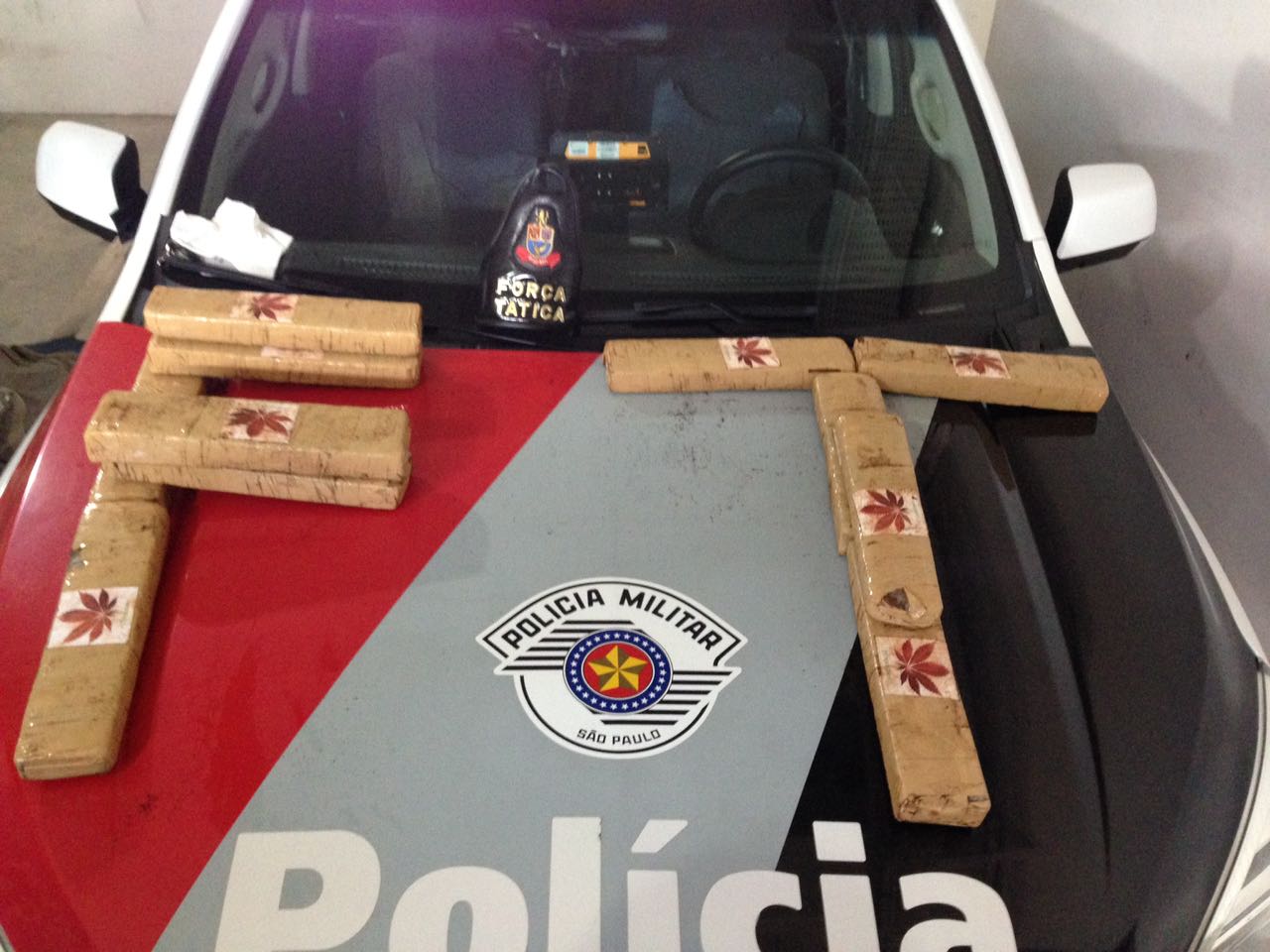 Foram apreendidos 11 tijolos de maconha com aproximadamente 10,5 quilos em uma mochila no porta-malas de um GM Corsa com placas de Itapevi. O entorpecente estava coberto de pó de café para disfarçar o cheiro.