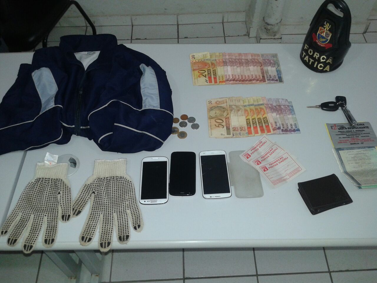 Com eles foram apreendidas as roupas utilizadas na ação, luvas utilizadas para encobrir as mãos, o dinheiro e notas de abastecimento do posto, além de celulares com mensagens sobre a preparação do crime.