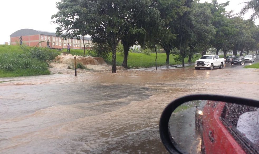 Avenida das Esmeraldas no momento da chuva (Foto: Divulgação)