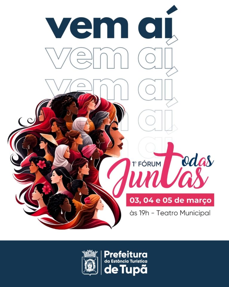 A Prefeitura de Tupã realiza, entre os dias 3 e 5 de março, sempre a partir das 19h, o 1º Fórum Todas Juntas, no Teatro Municipal José Antônio Parra Gomes. Segundo a administração municipal, o objetivo é promover reflexão, escuta e construção de propostas voltadas ao fortalecimento das políticas públicas para as mulheres.