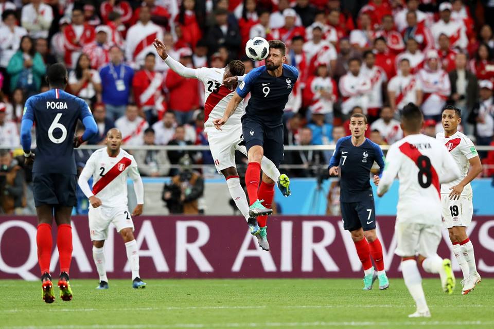 Griezmann e Mbappé encontravam muito espaço nas costas dos volantes peruanos, o que só mudou quando o time sul-americano conseguiu ficar com a posse de bola. E em sua primeira grande oportunidade, quase abriu o placar aos 30. Cueva avançou pela esquerda e tocou no meio para Guerrero, que se antecipou a Umtiti, dominou e bateu firme, mas em cima de Lloris.