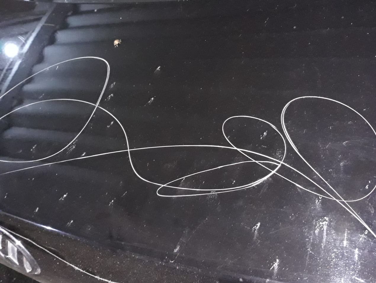 Carro foi riscado no Velório Municipal (Foto: Arquivo Pessoal)