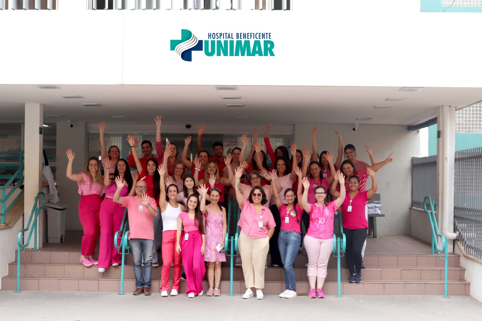 Funcionários do Hospital Beneficente Unimar (HBU) se vestiram de rosa em apoio à campanha Outubro Rosa, que tem o objetivo de orientar e conscientizar as pessoas sobre a prevenção ao câncer de mama. A iniciativa foi da equipe de Gestão de Pessoas do Departamento de Recursos Humanos e do Núcleo de Humanização da Associação Beneficente Hospital Universitário (ABHU).