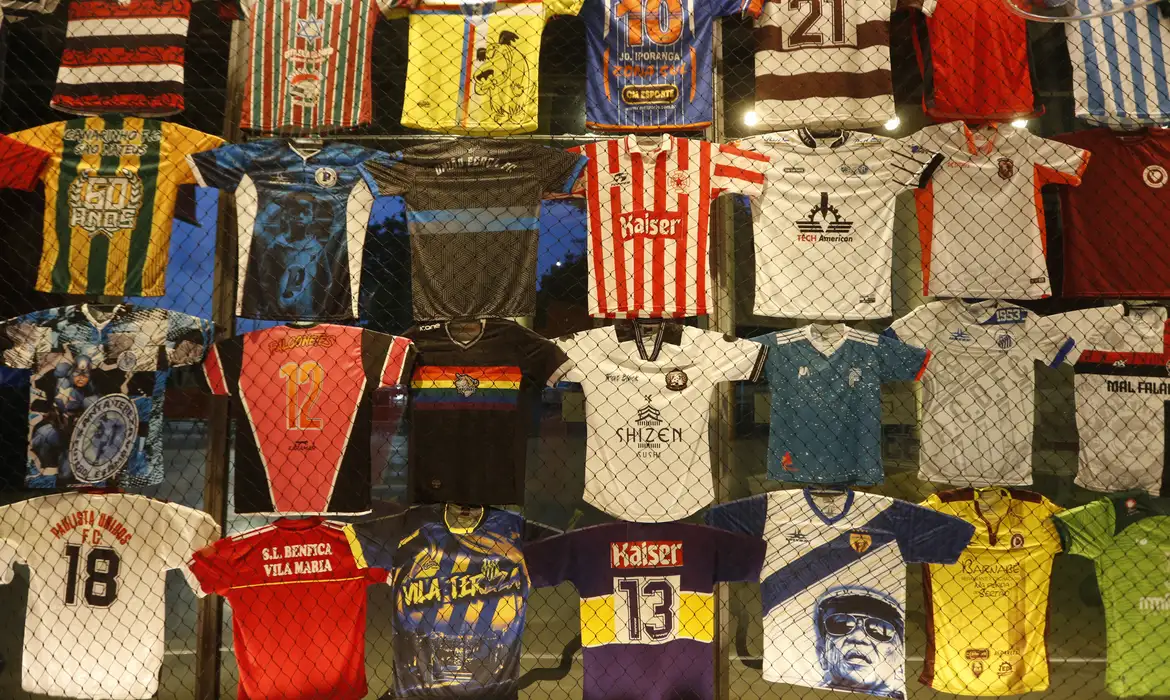 Uma instalação especial reúne dezenas de camisas dos times, de acervos dos curadores e de personalidades da várzea. Também é possível ouvir na exposição as músicas que animam os churrascos após os jogos. Há uma lista indicada por “DJs da várzea” que pode ser ouvida em uma caixa de som tipicamente usada no churrasquinho.