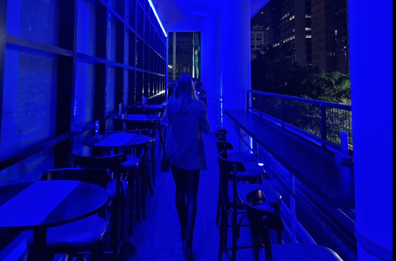 Casa de show Blue Note em São Paulo, com iluminação toda em azul (Foto: Gabriel Tedde)