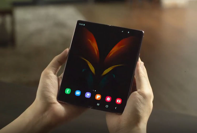 Além de poder ser usado completamente fechado ou aberto, o Z Fold 2 também funciona no meio termo, dobrado entre 75º e 115º. A empresa fez uma séries de demonstrações de como esse modo flexível pode ser usado para posicionar o celular para fotos e também para assistir um vídeo e deixar parte da tela só para comandos, por exemplo.