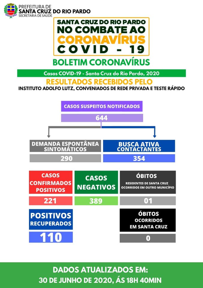 A Prefeitura Municipal de Santa Cruz do Rio Pardo (distante 120 quilômetros de Marília) confirmou mais 16 casos de coronavírus nesta terça-feira.