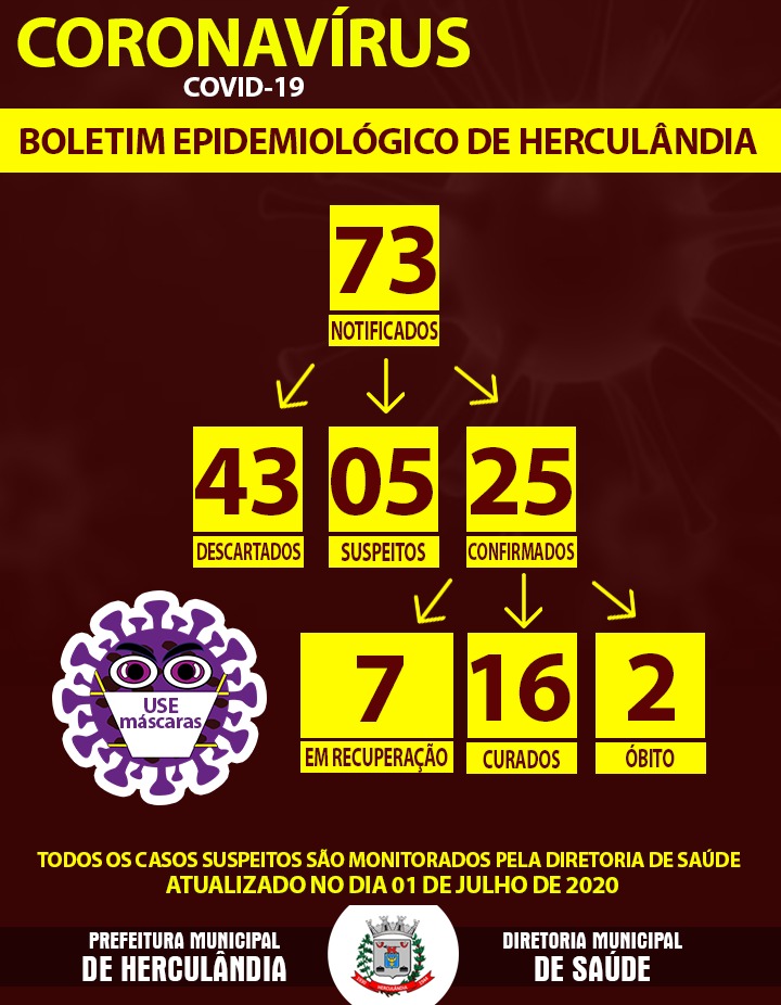 Herculândia tem 25 testes positivos da doença, sendo duas mortes e 16 considerados curados. Outros cinco pacientes aguardam resultados de exames.