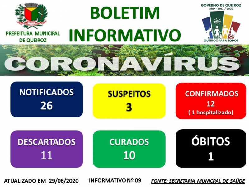 A Prefeitura de Queiroz (distante 69 quilômetros de Marília) confirmou mais dois casos de coronavírus nesta terça-feira e a cidade soma 12 testes positivos da doença.
