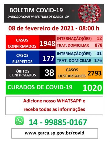 A equipe da Vigilância Epidemiológica informou os hospitais onde os garcenses estão internados para tratamento. Há duas pessoas em ala clínica da Santa Casa de Marília, uma em ala clínica e cinco na UTI do Hospital das Clínicas em Marília, duas em ala clínica e três na UTI do Hospital São Lucas em Garça.