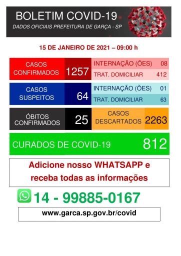 A Prefeitura de Garça (distante 35 quilômetros de Marília) confirmou mais 50 testes positivos de coronavírus nesta sexta-feira (15).