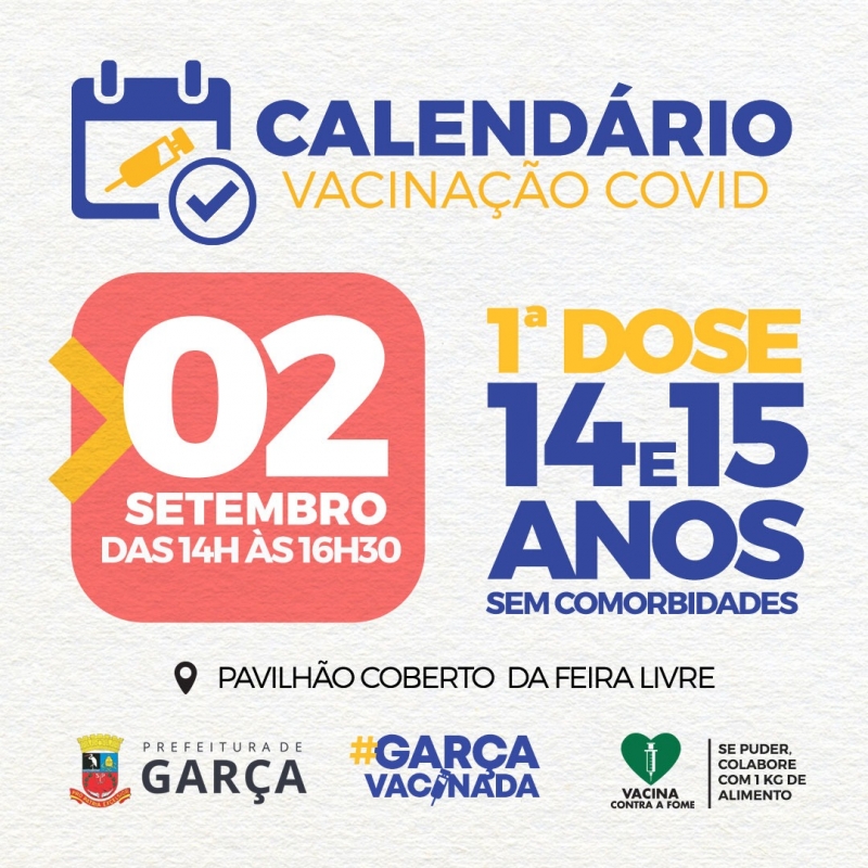 A Prefeitura de Garça (distante 35 quilômetros de Marília) divulgou a lista com os convocados para a vacinação contra a Covid-19 dos jovens de 14 e 15 anos.