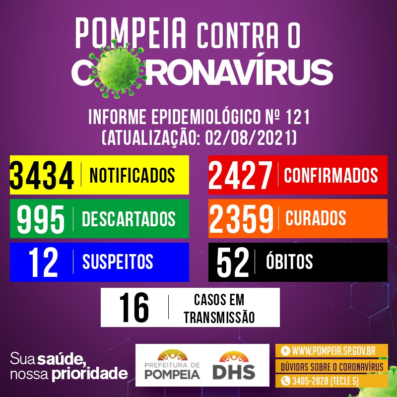 Já a Prefeitura de Pompeia informou apenas novos quatros testes da infecção. Os casos são com um morador de cada um dos bairros: Jardim José Januário, Jardim América, Bandeirantes e Flândria.