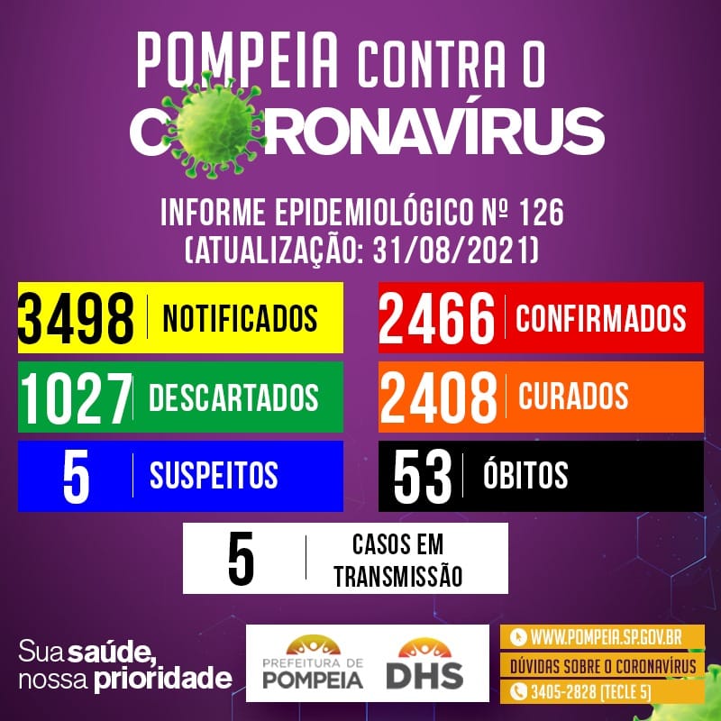 A Prefeitura de Pompeia (distante 31 quilômetros de Marília) informou seis novos casos da Covid-19, nesta terça-feira (31).