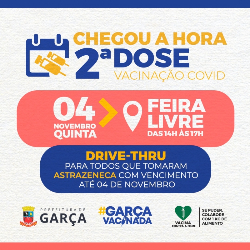 A Prefeitura de Garça (distante 35 quilômetros de Marília) faz nova ação de vacinação contra Covid-19 nesta quinta-feira (4).