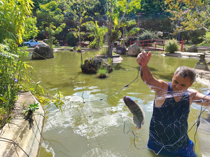 Nessa sexta-feira (9), foram retirados os peixes da espécie tilápia-do-nilo do Jardim Oriental, sendo este o primeiro passo para a limpeza e reestruturação do Lago Ornamental.