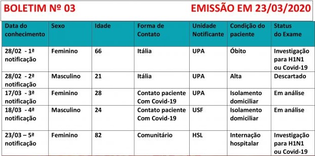 Os boletins epidemiológicos de Garça são emitidos sempre que houver mudança no quadro.