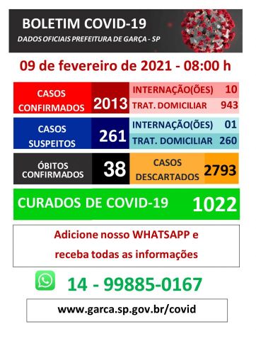 A equipe da Vigilância Epidemiológica informou os hospitais onde os garcenses estão internados. Há duas pessoas em ala clínica da Santa Casa de Marília, uma em ala clínica e cinco na UTI do Hospital das Clínicas de Marília e três na UTI do Hospital São Lucas em Garça.