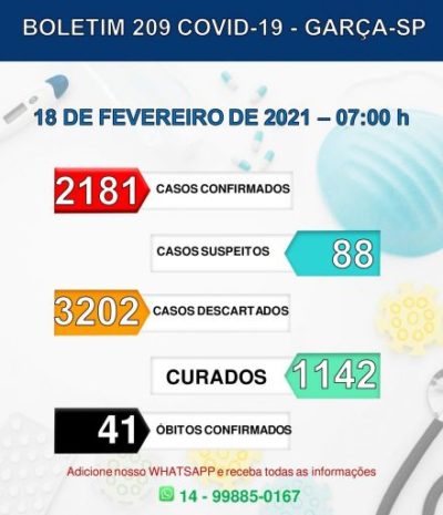 O boletim mostra ainda as instituições onde os garcenses estão em tratamento. Há dois pacientes em ala clínica da Santa Casa de Marília, um em ala clínica e três na UTI do Hospital das Clínicas de Marília e duas na UTI do Hospital São Lucas em Garça.
