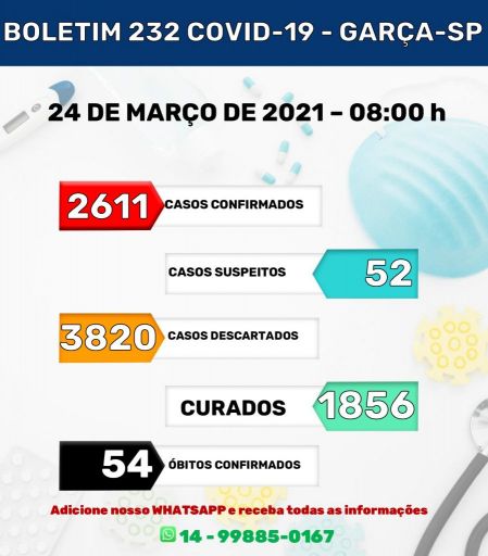 A Prefeitura de Garça (distante 35 quilômetros de Marília) confirmou mais oito testes positivos de coronavírus nesta quarta-feira (24).