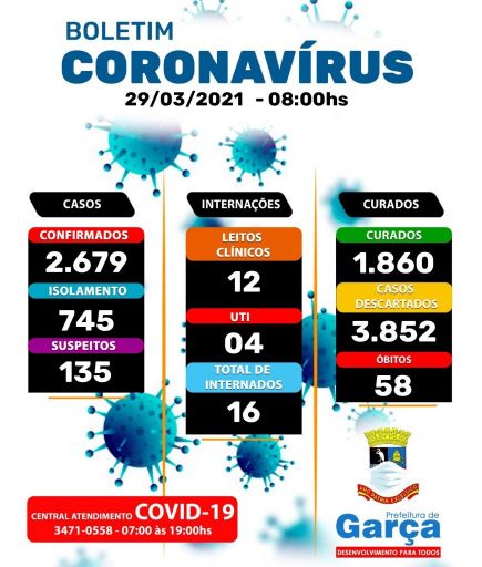 A Prefeitura de Garça (distante 35 quilômetros de Marília) confirmou 26 novos testes positivos de coronavírus nesta segunda-feira (29).