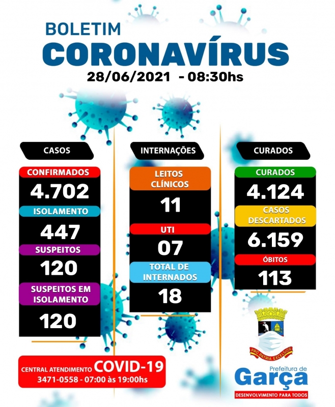 A Prefeitura de Garça (distante 35 quilômetros de Marília) divulgou 61 novos testes positivos de coronavírus nesta segunda-feira (28).