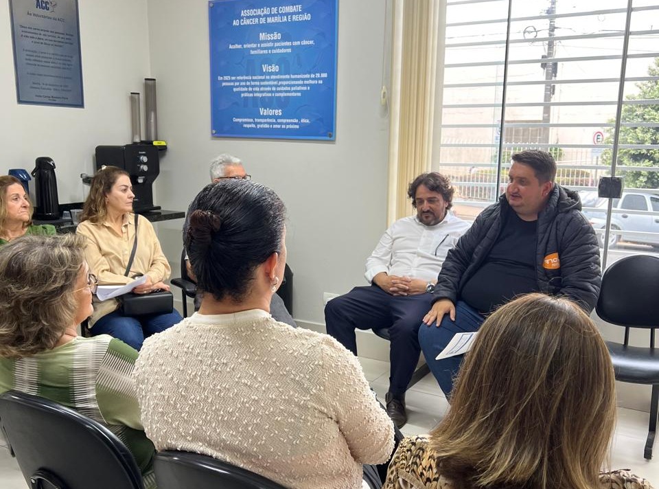 Durante a visita, Garcia e Nascimento se reuniram com a diretoria da ACC para discutir as necessidades dos pacientes atendidos pela instituição, os projetos em andamento e os desafios enfrentados pela associação, que atua no acolhimento, orientação e assistência a pessoas com câncer, seus familiares e cuidadores.
