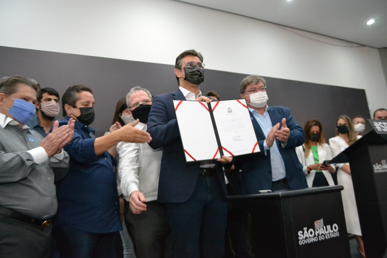 Vice-governador Rodrigo Garcia (PSDB) assina repasses para Marília e região (Foto: Leonardo Moreno/Marília Notícia)
