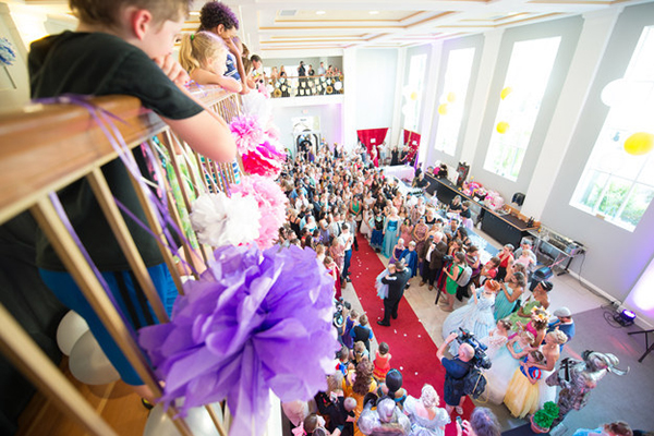 O banco local foi usado como cenário, que acomodou o aniversário, a formatura e até o casamento de Lila em um único evento. Tudo, das fantasias, passando pela música e chegando na comida, foi doado e centenas de pessoas viajaram o Estados Unidos para estar com a garotinha neste dia especial — ela, inclusive, resolveu se fantasiar como Cinderela.