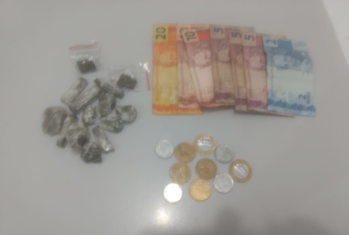 Também foram apreendidas porções de maconha que estavam escondidas em um terreno baldio. O adolescente confessou que estava vendendo drogas.