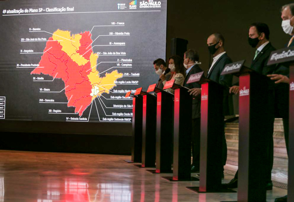 O Estado está atualmente numa fase chamada de transitória pelo governo, que seria uma ponte entre a vermelha e a laranja. No entanto, foram autorizadas ocupações de espaços que condizem com o esperado nas fases menos restritivas, como amarela e verde. Este ano, o governo criou em março também a fase emergencial, mais grave que a vermelha.