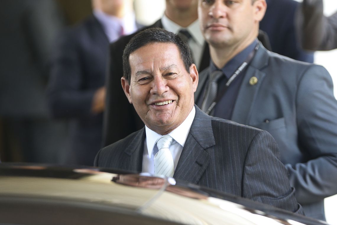 O presidente em exercício,General Hamilton Mourão, ao sair de seu gabinete no Palácio do Planalto.