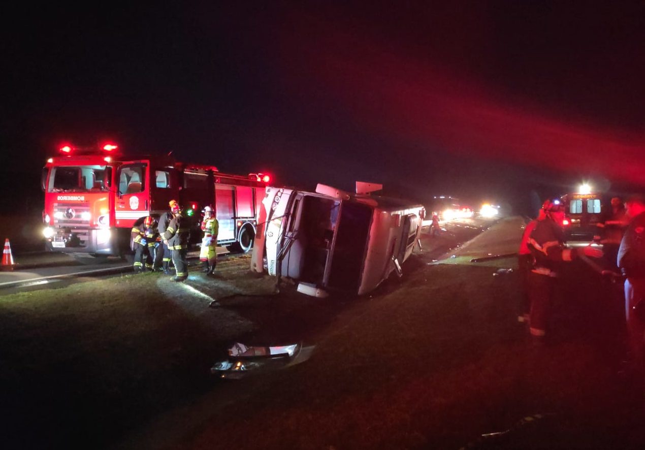 Segundo a Polícia Rodoviária Estadual por volta de 00h50, um ônibus escolar tombou no quilômetro 543 + 200 metros da SP-270.
