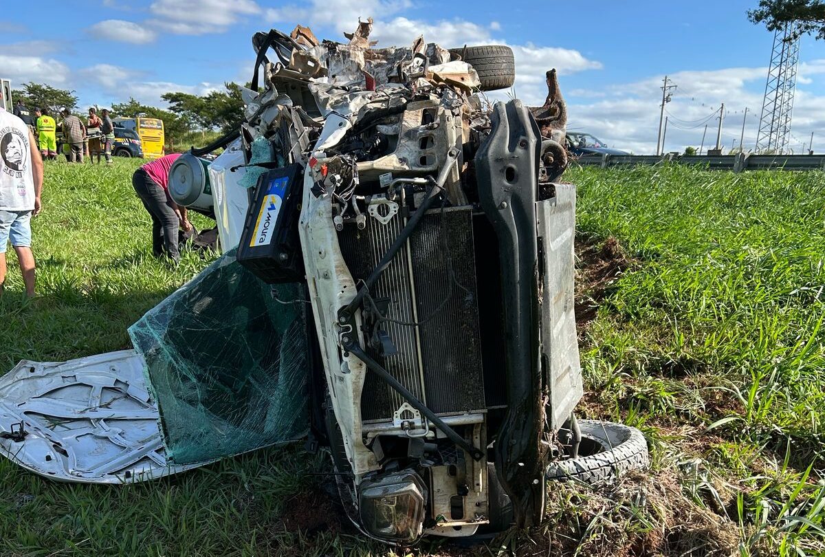 Caminhonete ficou destruída após colisão com caminhão na BR-153 (Foto: Redes sociais)