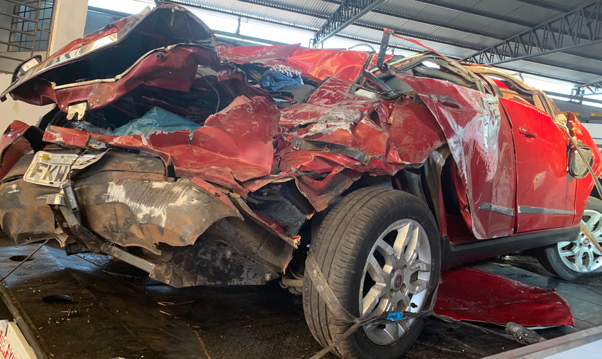 Veículo ficou completamente destruído após o capotamento na rodovia Marechal Rondon (Foto: J.Serafim/Divulgação)