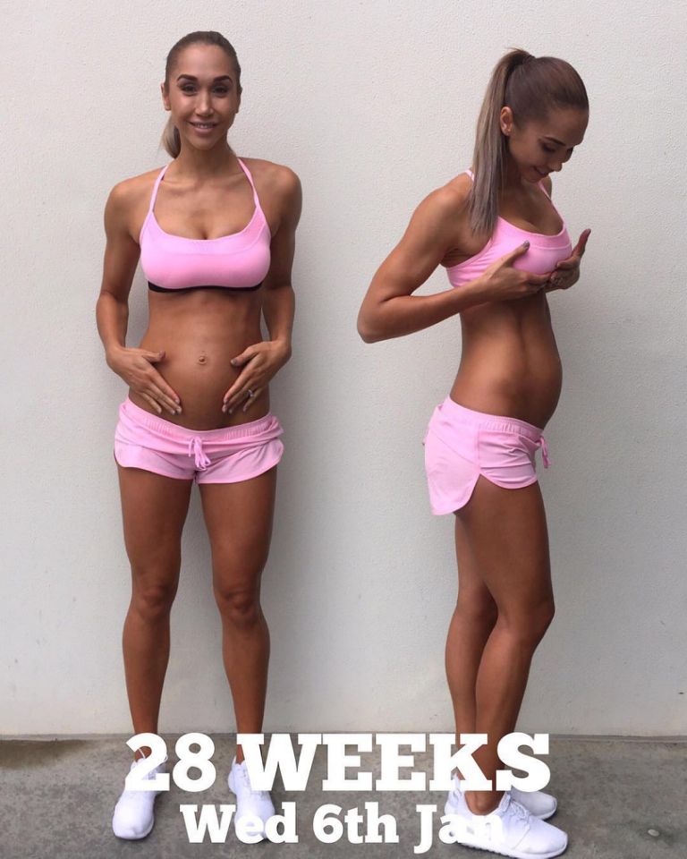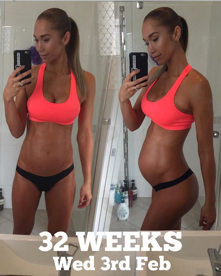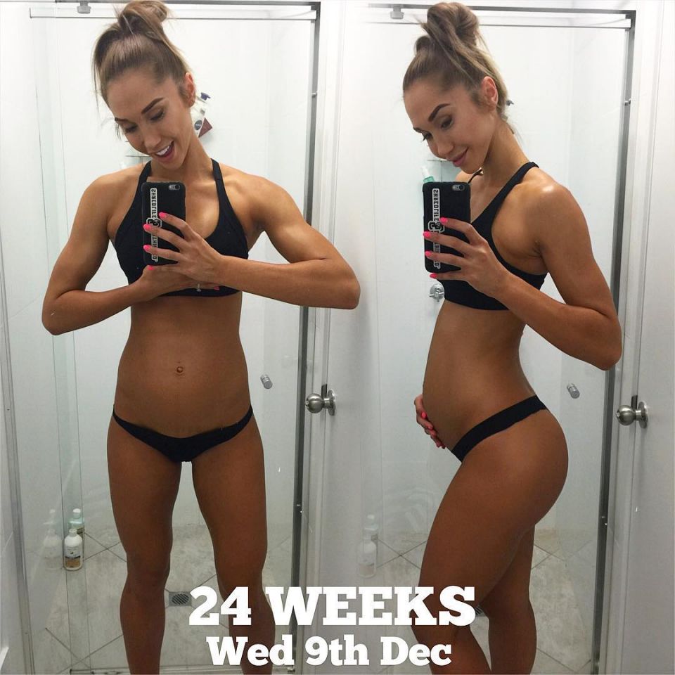 Ela, que já foi até finalista do Miss Austrália em 2009, costuma dividir com seus quase 200 mil seguidores sua rotina, que inclui muita alimentação saudável e, claro, exercícios físicos. Como ela continuou com este estilo de vida mesmo depois de descobrir que estava grávida, não engordou mais do que 7 quilos até agora.
