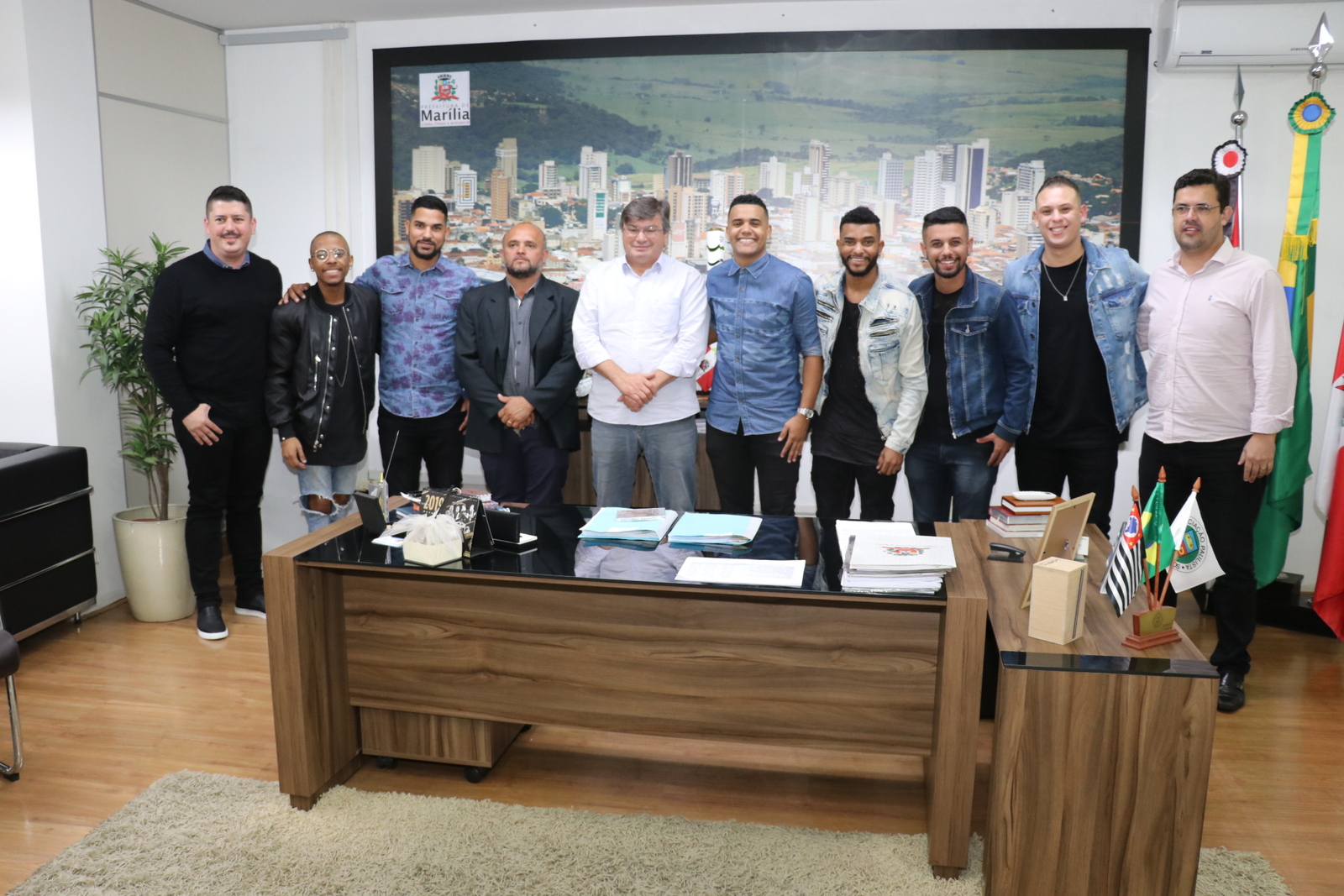 O prefeito Daniel Alonso recebeu em seu gabinete na tarde desta sexta-feira (19) o grupo Samba Show, do Rio de Janeiro. A Prefeitura será uma das parceiras para a gravação do primeiro DVD do grupo, que trará a Marília artistas de destaque nacional em abril de 2020, mês de aniversário da cidade.