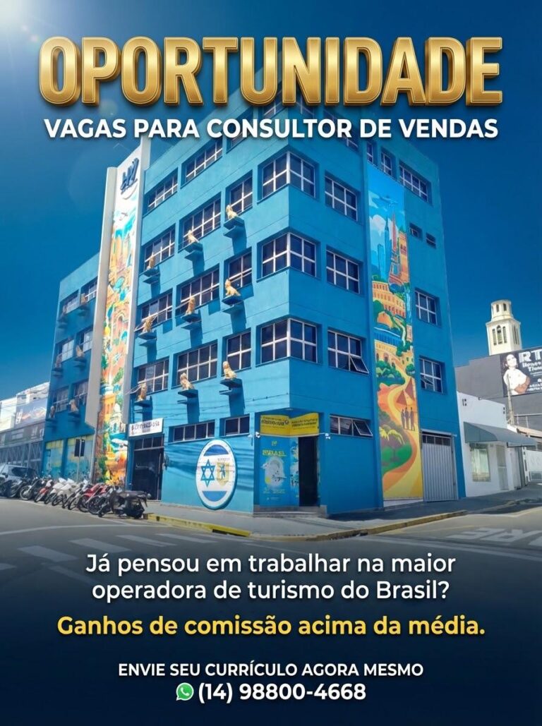 A Hadassa Viagens abriu 10 vagas para vendedores em Marília. As oportunidades fazem parte da expansão da equipe comercial da empresa, que se apresenta como a maior operadora de turismo do Brasil.