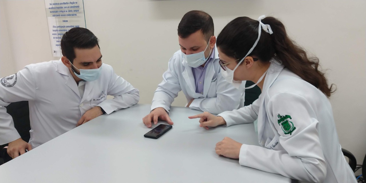 Médico Marcos Pagani Júnior (centro), conversa com os residentes Pedro Dolfini e Mariana Castilho Facchini (Foto: Divulgação/Assessoria de Imprensa)