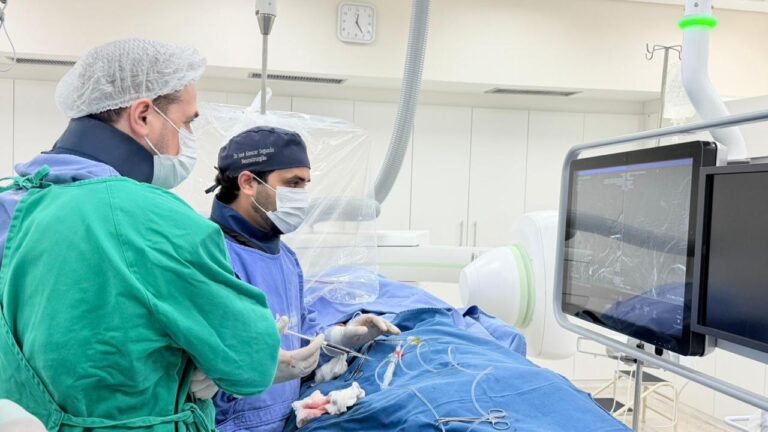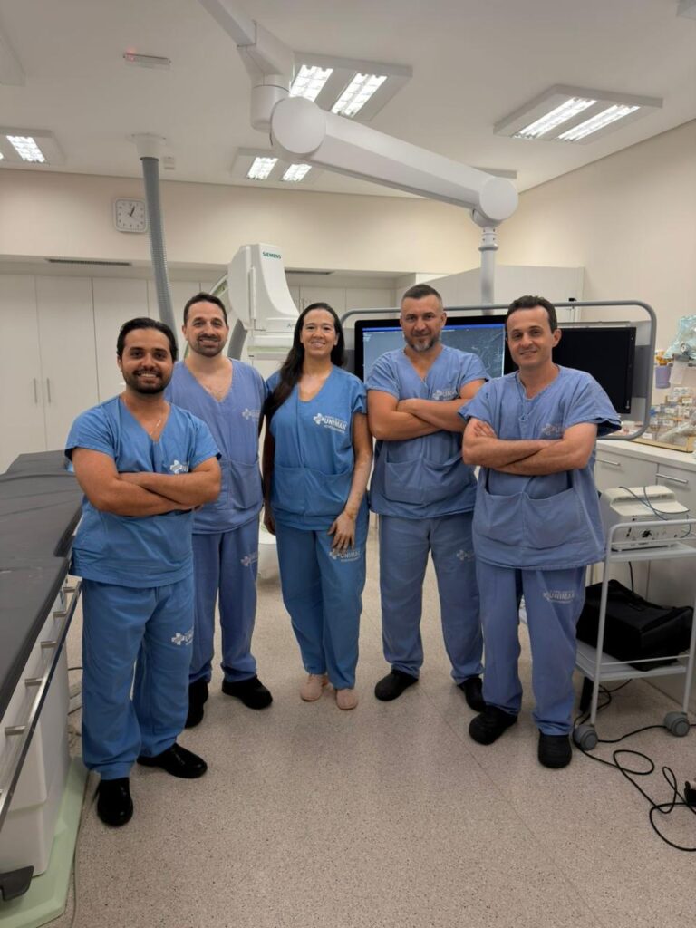 O procedimento foi realizado por equipe multiprofissional composta pelos neurocirurgiões José Alencar Segundo e José Miguel Aiquel Bellolio, com participação da anestesista Raissa Maluf, do enfermeiro Guilherme Garbelini e dos técnicos de enfermagem Eriton Scarpa e Amanda Xavier.